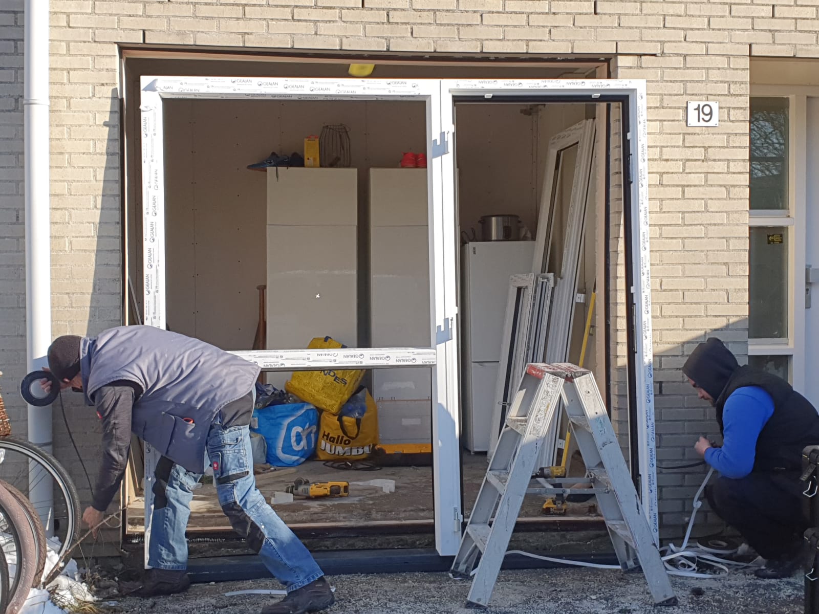 We vervangen de, vaak niet geïsoleerde garagedeur door een mooi kunststof kozijn met hoogwaardig isolatieglas én een kunststof deur met veiligheidsbeslag. Hierdoor kunt u mensen direct in uw nieuwe kantoorruimte ontvangen.