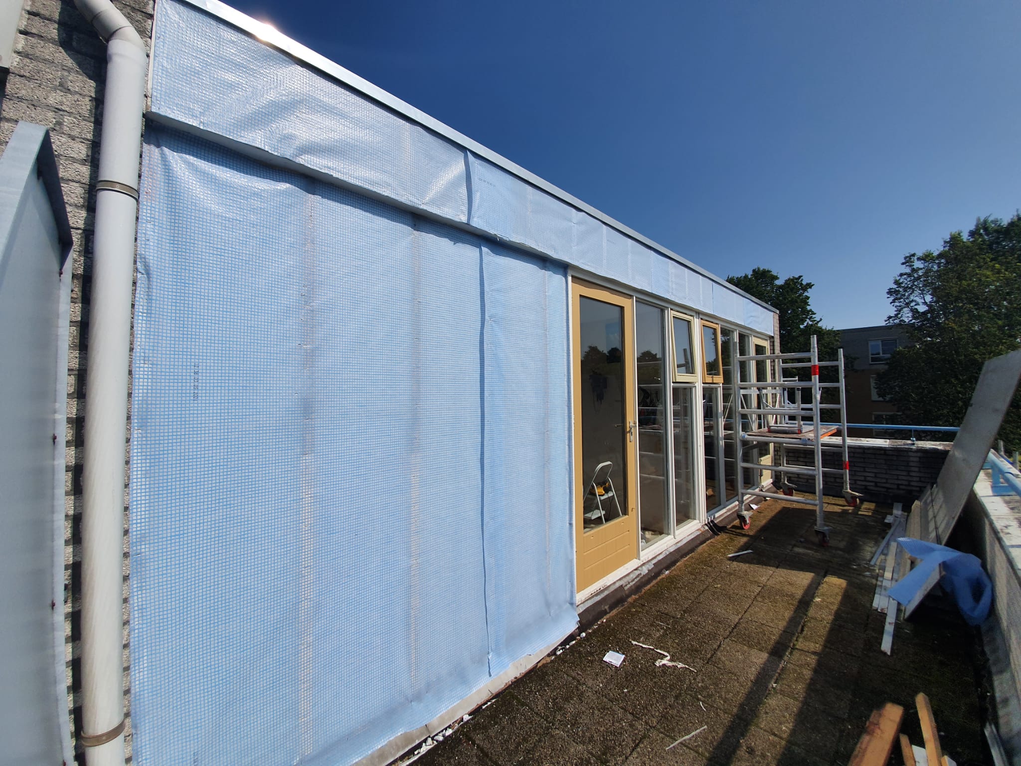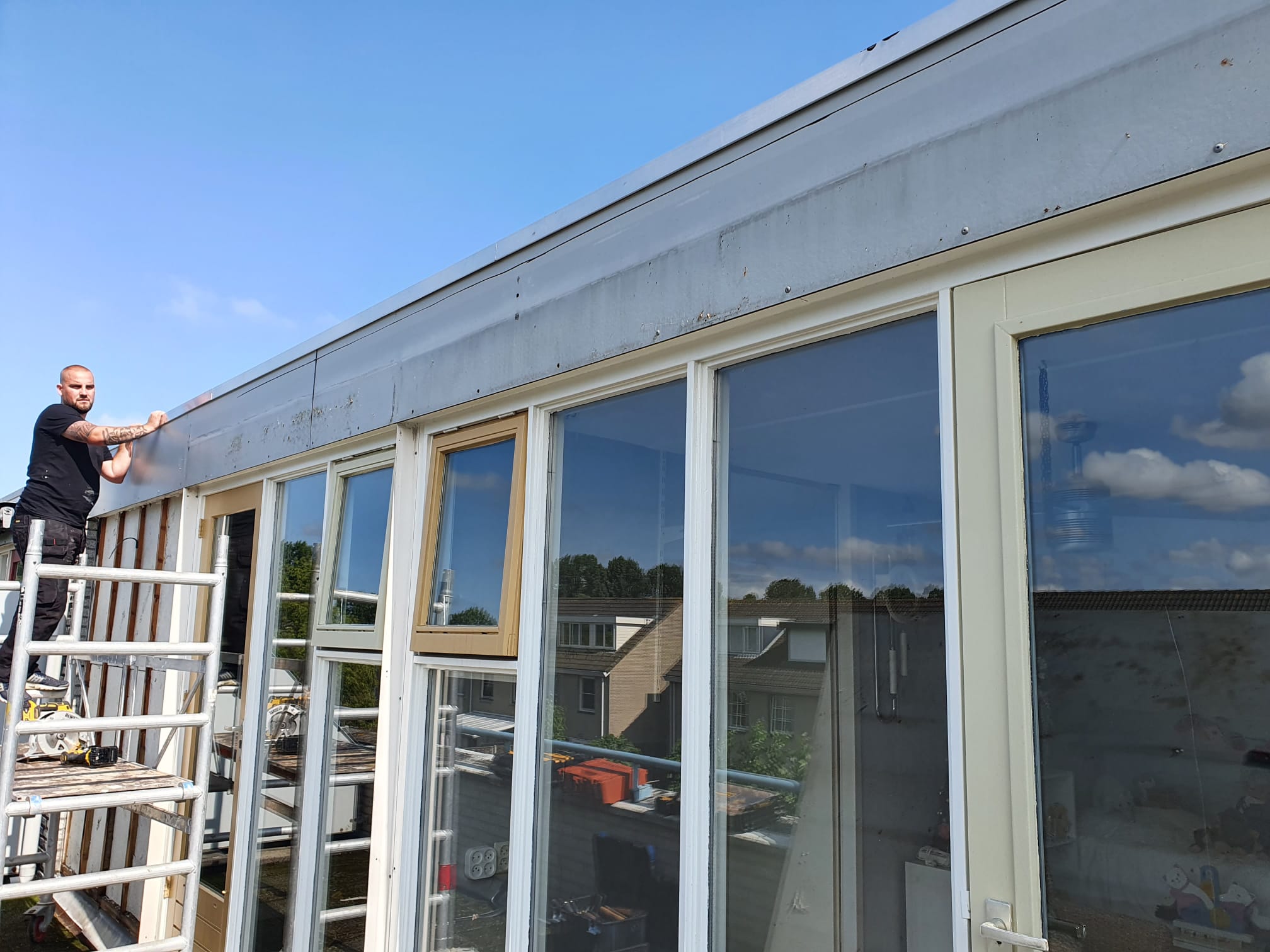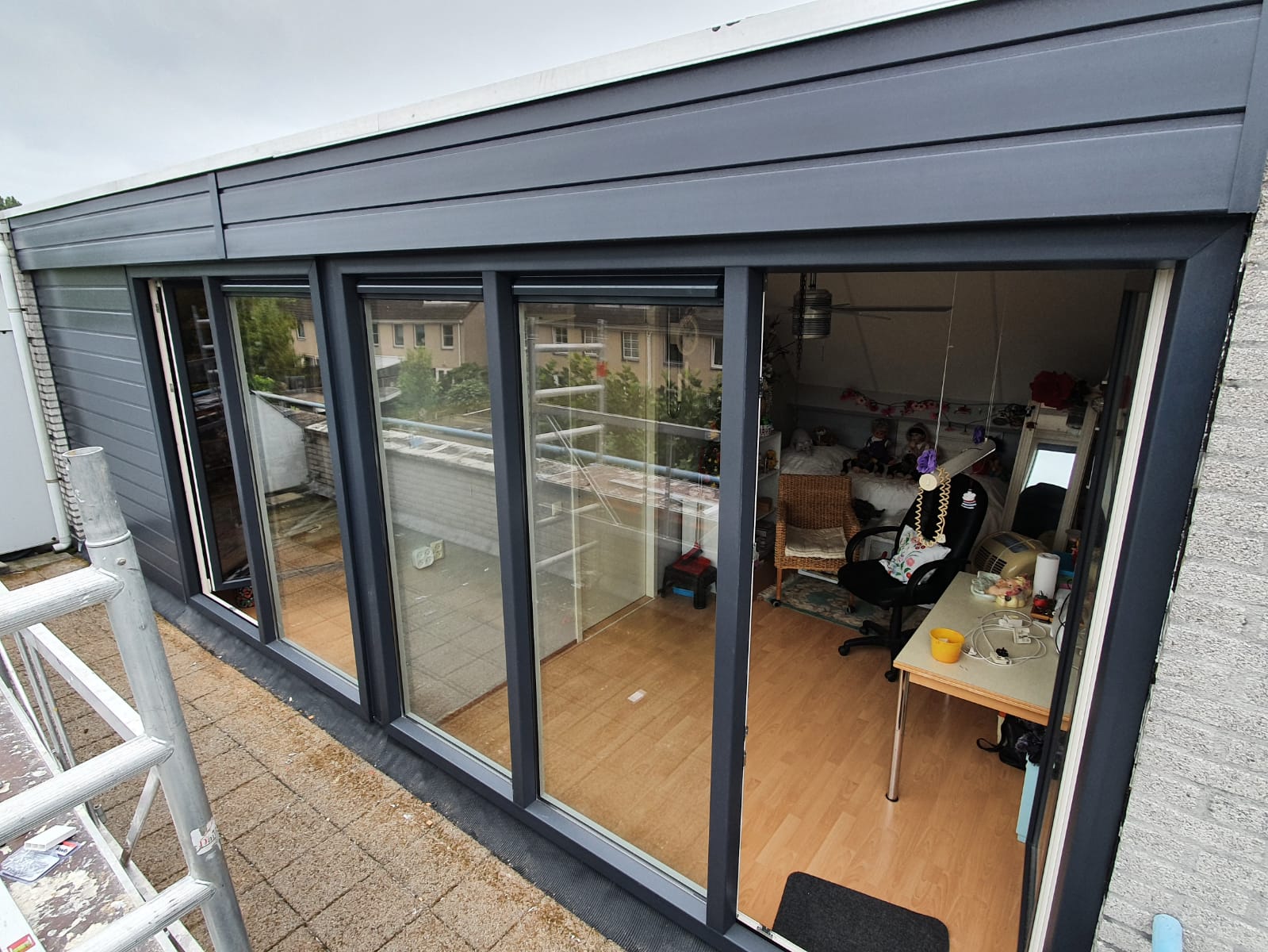 Bij deze woning in Almere Buiten hebben we het oude kozijn vervangen door een mooi kunststof schuifpui over de hele lengte van de bovenverdieping. Hierdoor wordt het dakterras visueel bij de binnenruimte getrokken wat een enorme ruimtegevoel geeft.